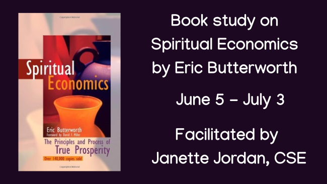Registration is now open! Registration is a two-step process. Sessions will meet in person at 7 p.m. on Thursdays, June 5-July 3, 2025. The book is widely available at a variety of booksellers; just Google "Spiritual Economics."
