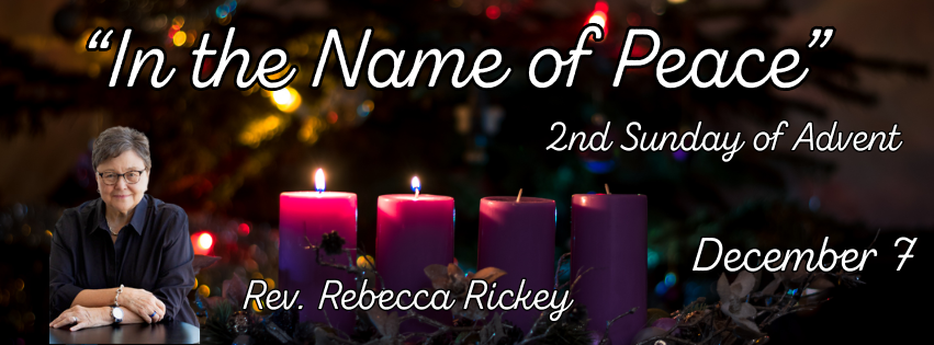 Do you long for peace in your life and in the world? What are you willing to do in the name of peace: peace of mind, a peaceful heart, peace in your community and the world? Those of us observing this 2nd week of Advent long for a peace which is more than just the absence of conflict. We seek a peace that assures a deep and lasting harmony. This peace is achieved through faith and hope, prayer, release, and trust. Are you willing to clear away what blocks the expression of the peace that is already yours? What will you do in the name of peace? Join Rev. Becky as we explore the importance of peace in our lives, hearts, and minds.