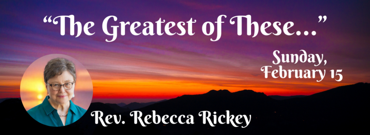 Valentine’s Day is upon us and love is in the air. It’s all hearts and flowers, and candy and greeting cards, right? It’s that day each year when we show our “special ones” how much we love them. It can also be a time fraught with unmet expectations, disappointments, and even resentment. I invite us to look beyond the chocolates and candy hearts to explore the deepest and most enduring kind of love…the love of God for us and in us. Love is not something we earn or lose; it is the very essence of who we are and the spiritual power that heals, restores, and transforms our lives. Let’s explore together the love that is constant, inclusive, unconditional, and never disappoints. Please join us.